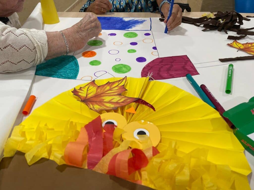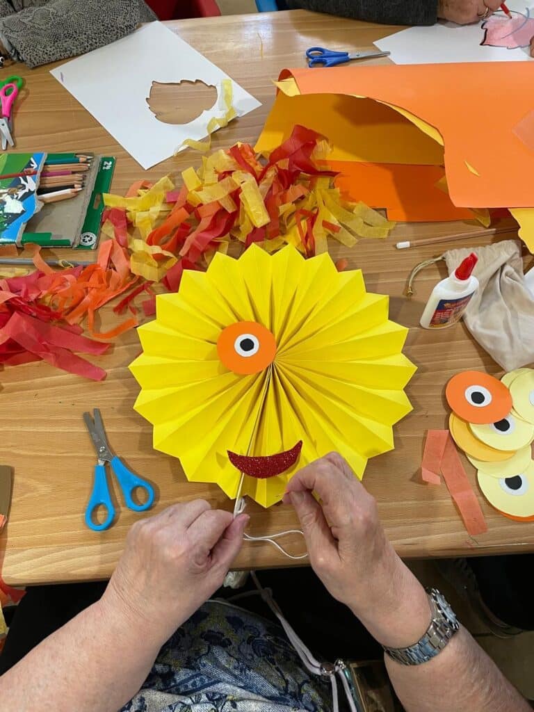 Durante todo el mes, nuestros residentes pusieron manos a la obra preparando manualidades relacionadas con la estación. Entre pinceles, tijeras y muchas risas, fueron creando piezas que finalmente se unieron en un gran mural.
