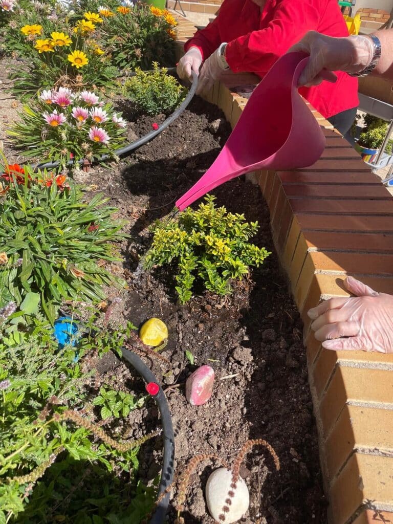 Una vez ambientado el interior del centro no podía quedar así la cosa, teníamos que decorar algo el jardín o la zona exterior de la residencia y que menos que con las plantas recibidas que nos recomendaron nuestros amigos de Astroflor , los residentes se organizaron para decorar el jardín y algunas zonas comunes.